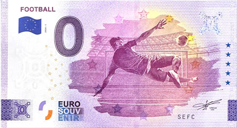 The 0 euro note is a souvenir note that has the same appearance as a real euro note, but has no monetary value. It was developed by French entrepreneur Richard Faille and was first presented in 2015. The zero euro notes are - with the approval of the European Central Bank (ECB) - printed by the world's third largest banknote manufacturer, the renowned French securities printing company Oberthur Technologies - with the security features typical of banknotes.